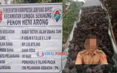 Lampung Barat, Vokalpublika.com – Setelah viral Peratin Pekon Heni Arong, Kecamatan Lumbok Seminung, Kabupaten Lampung Barat, Lampung di duga menggunakan material tidak sesuai spesifikasi pada pembangunan jalan rabat beton, namun hal itu justru menuai banyak sorotan dikalangan aktivis terutama Laskar Merah Putih Perjuangan (LMPP) Lampung Barat. Untuk Diketahui, Ketua LMPP dan tim melaporkan Peratin Pekon …
