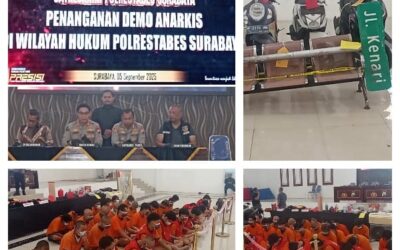 Surabaya, Vokalpublika.com – Polrestabes Surabaya menetapkan 33 orang sebagai tersangka pasca kerusuhan unjuk rasa anarkis di Gedung Negara Grahadi dan Polsek Tegalsari. Hal ini disampaikan dalam konferensi pers di Gedung Bhara Daksa, Jumat (5/9/2025) sore. Kegiatan tersebut dipimpin Kabidhumas Polda Jatim Kombes Pol Jules Abraham Abast, S.I.K., didampingi Kapolrestabes Surabaya Kombes Pol Dr. Luthfie Sulistiawan, …