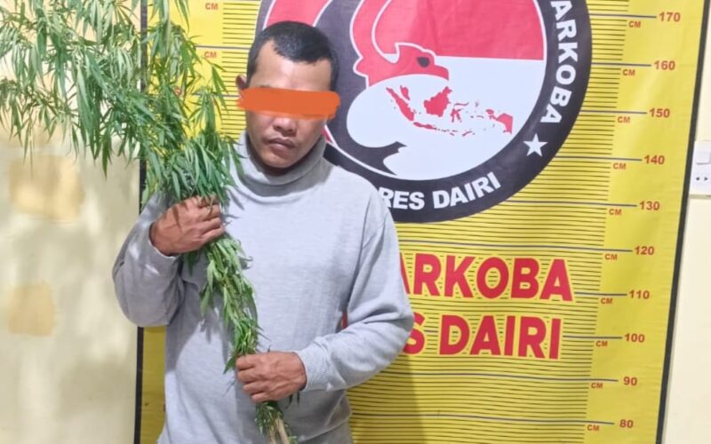 Seorang pria berinisial SRC (33) diamankan petugas setelah kedapatan menanam ganja di area perladangan miliknya yang berada di Desa Bangun Induk, Kecamatan Parbuluan, Kabupaten Dairi.