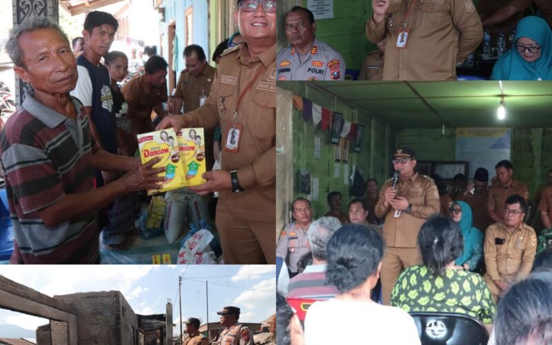 Wakil Bupati Dairi, Wahyu Daniel Sagala, menyerahkan bantuan kemanusiaan kepada warga yang terdampak musibah kebakaran di Dusun I, Desa Lautawar, Kecamatan Tanah Pinem, Senin (26/1/2026). Kebakaran tersebut terjadi pada Jumat malam (23/1/2026) sekitar pukul 19.55 WIB dan menghanguskan 11 unit rumah warga.