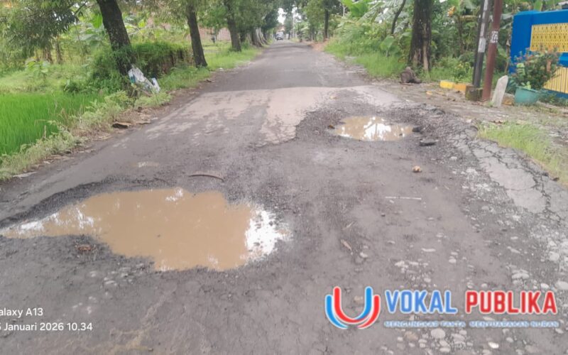 Pemalang, Vokalpublika.com – Baik pengguna jalan ataupun warga yang setiap hari melintas dari Kecamatan Ulujami, tepatnya di jalan Desa Limbangan menuju Desa Ketapang, mengeluhkan kondisi jalan Pemerintah Kabupaten (Pemkab) Pemalang yang rusak parah. Jalan sepanjang sekitar 300 meter dipenuhi lubang besar, membuat kendaraan harus berjalan perlahan, bergelombang, bahkan beberapa kali berhenti agar tidak terperosok. Jalan ini menjadi jalur utama warga untuk aktivitas harian mereka.